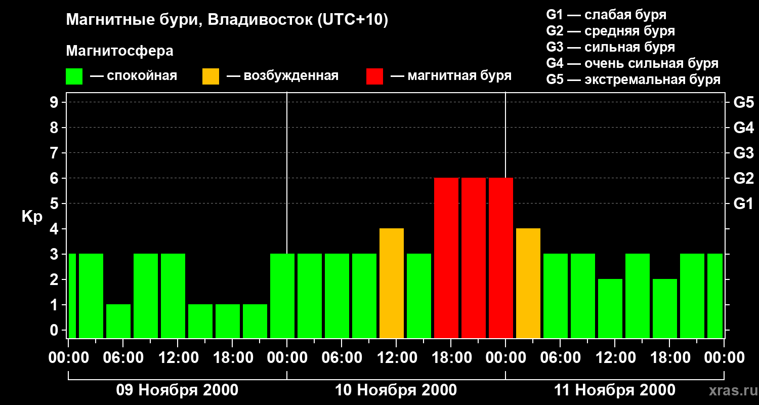 Магнитные бури во Владивостоке 11 ноября 2000 года