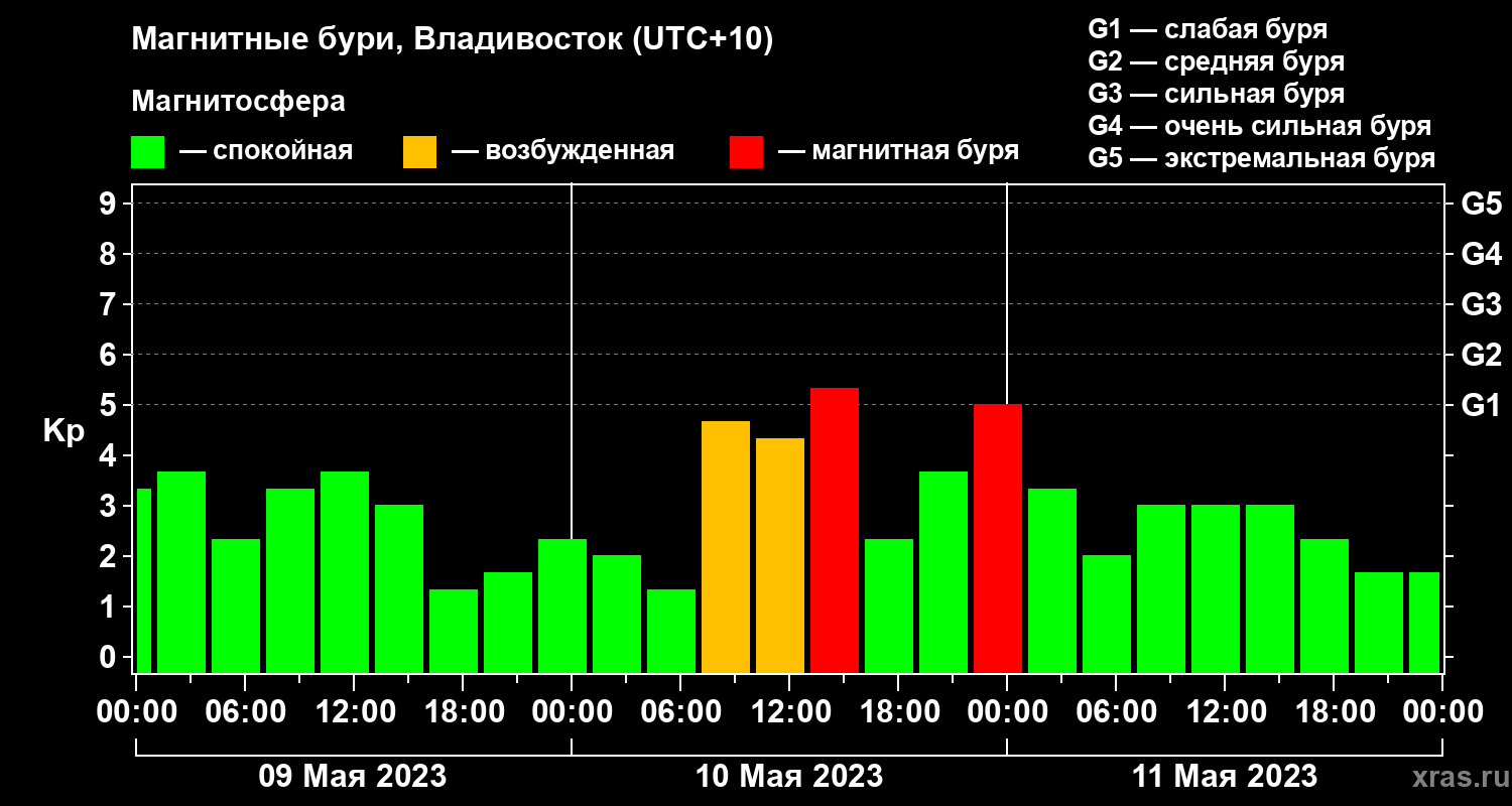 Магнитные бури во Владивостоке 11 мая 2023 года