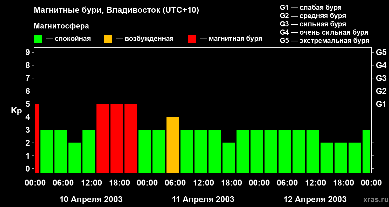 Магнитные бури во Владивостоке — 12 апреля 2003 года