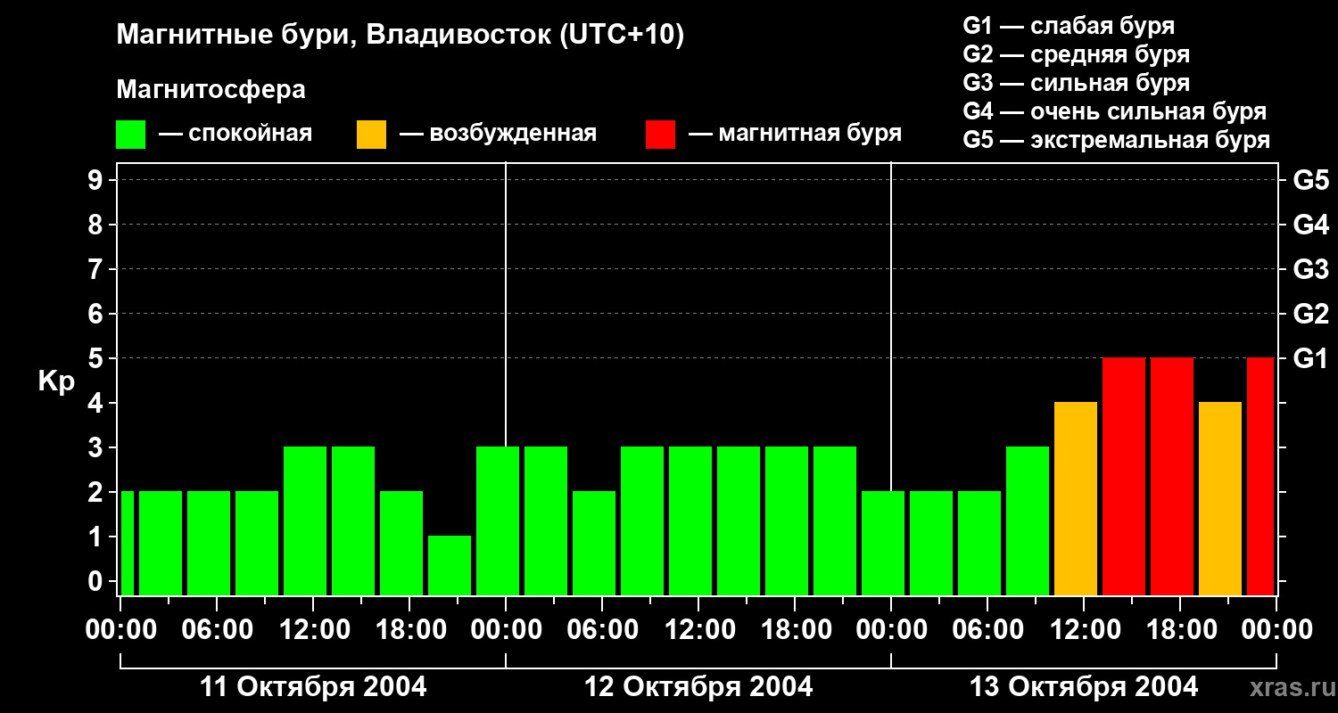 Магнитные бури во Владивостоке — 13 октября 2004 года