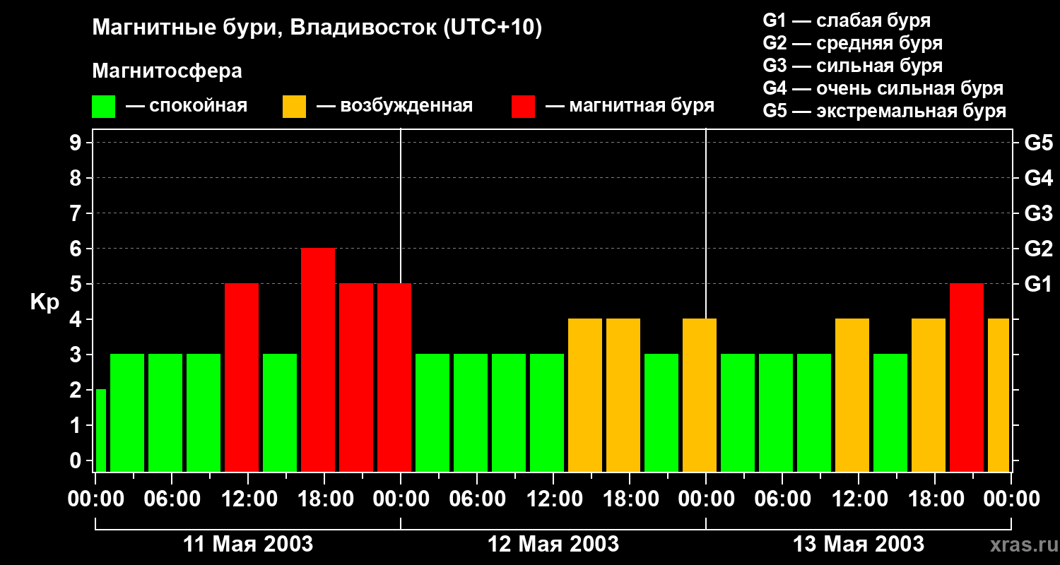 Магнитные бури во Владивостоке — 13 мая 2003 года