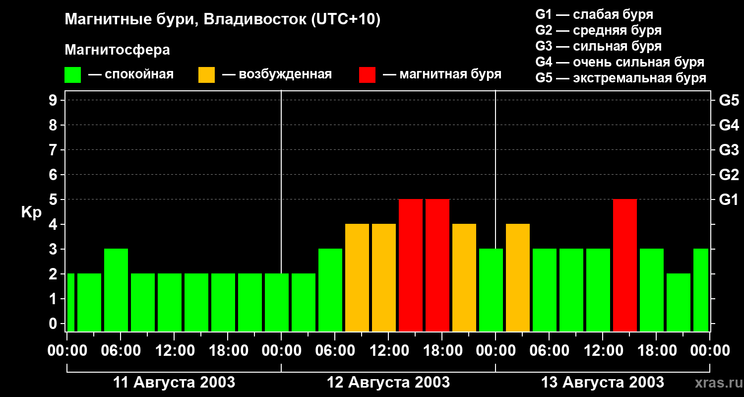 Магнитные бури во Владивостоке — 13 августа 2003 года