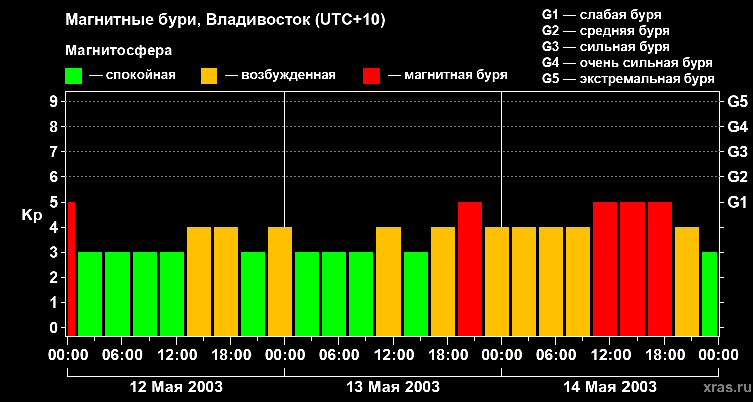 Магнитные бури во Владивостоке — 14 мая 2003 года
