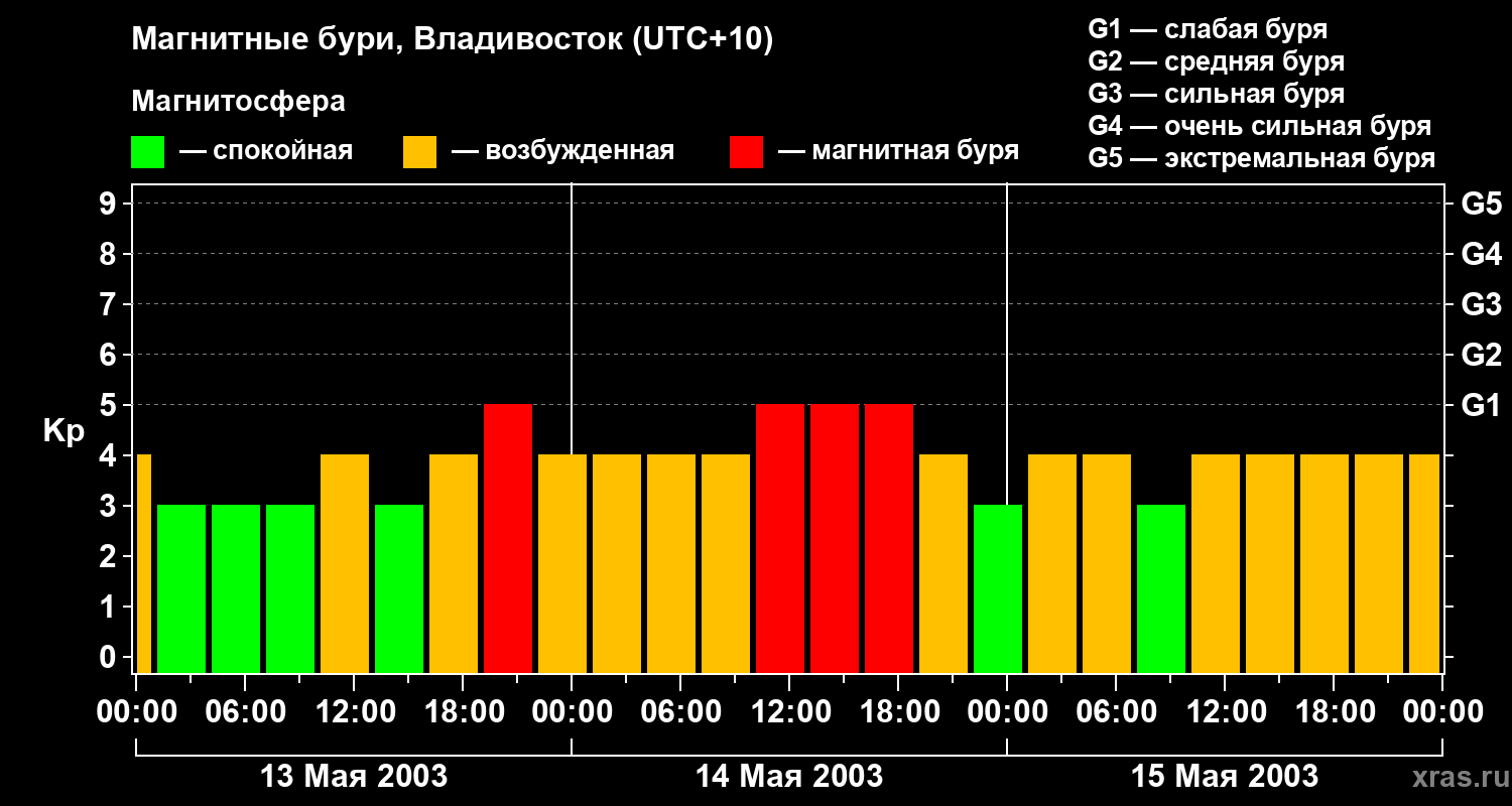 Магнитные бури во Владивостоке — 15 мая 2003 года