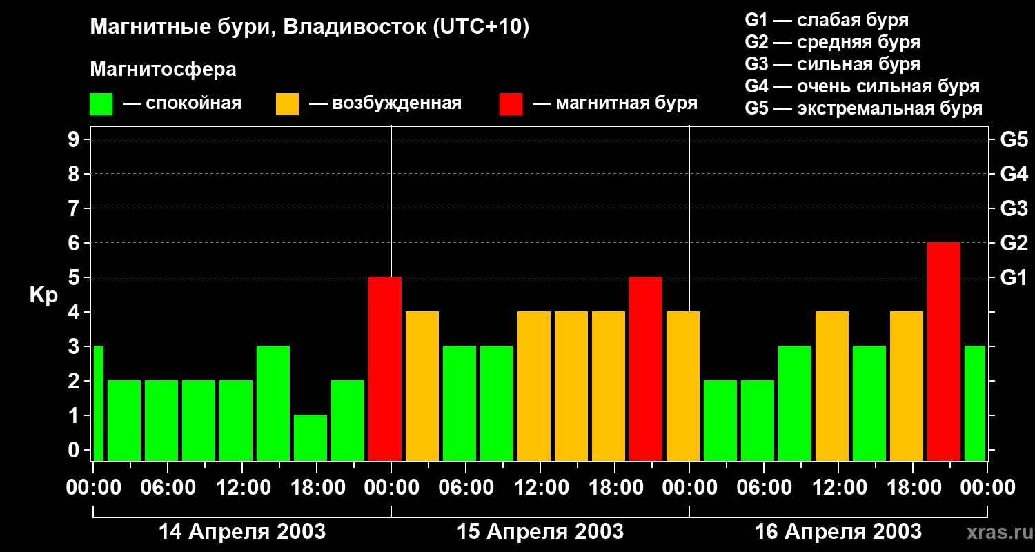 Магнитные бури во Владивостоке в апреле 2003 года