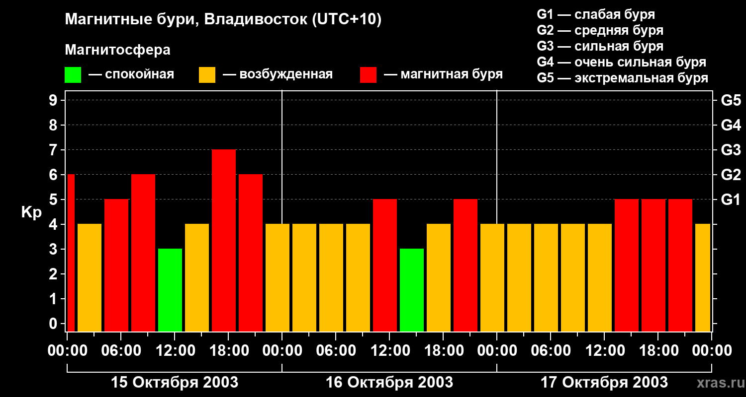 Магнитные бури во Владивостоке — 17 октября 2003 года