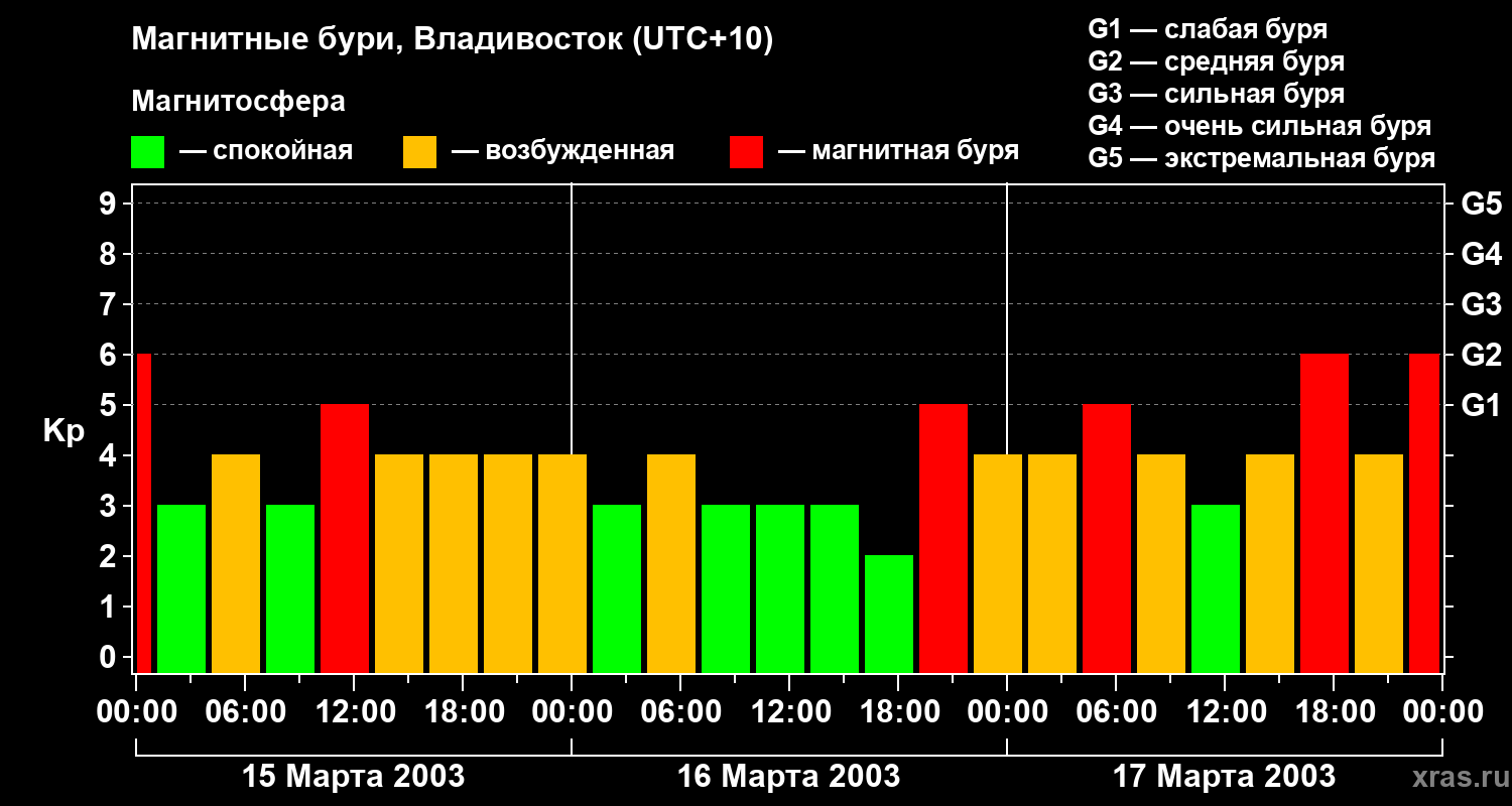 Магнитные бури во Владивостоке — 17 марта 2003 года