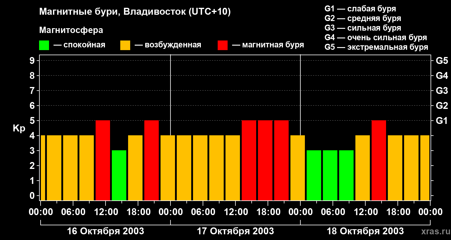 Магнитные бури во Владивостоке — 18 октября 2003 года