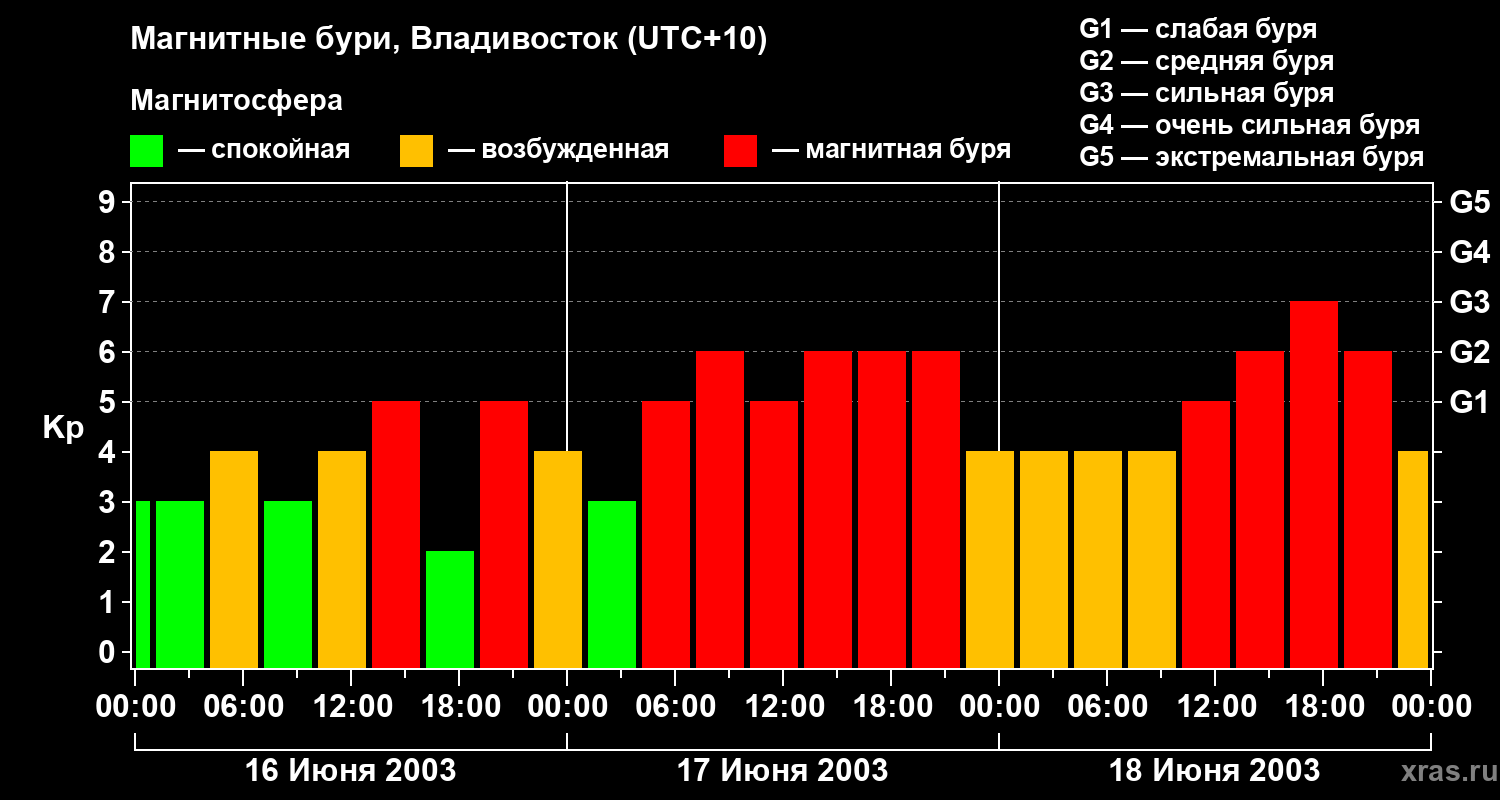 Магнитные бури во Владивостоке — 18 июня 2003 года