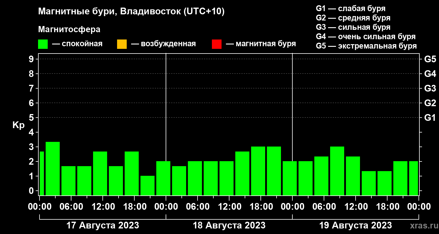 Магнитные бури во Владивостоке 19 августа 2023 года