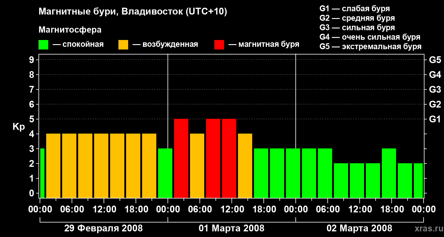 Магнитные бури во Владивостоке — 2 марта 2008 года