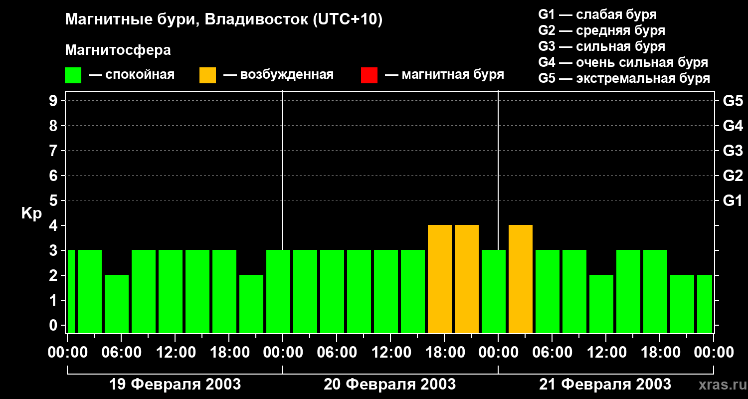 Магнитные бури во Владивостоке — 21 февраля 2003 года