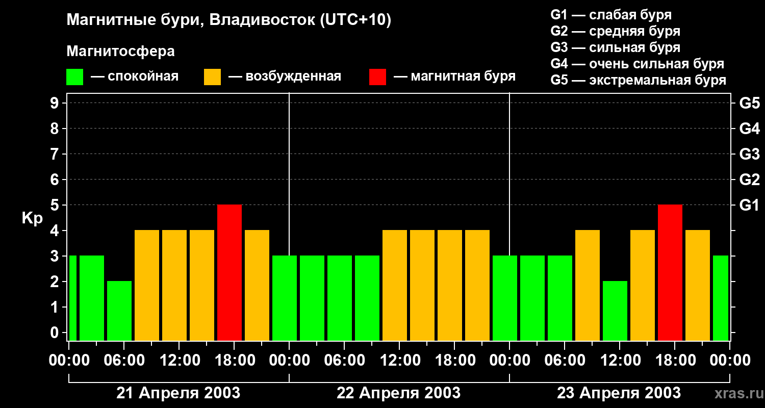 Магнитные бури во Владивостоке — 23 апреля 2003 года