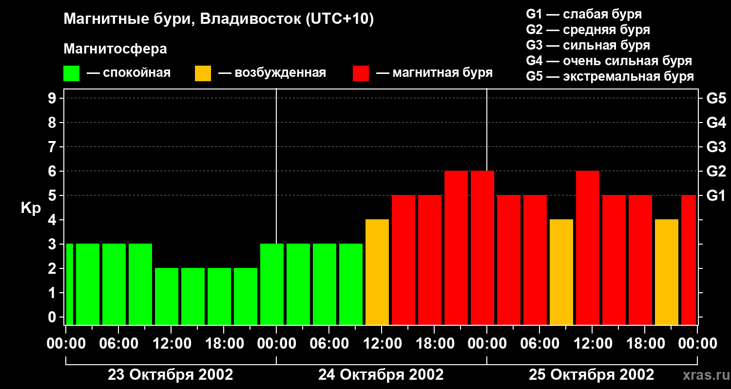 Магнитные бури во Владивостоке 25 октября 2002 года