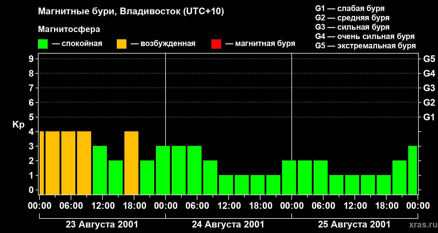 Магнитные бури во Владивостоке 25 августа 2001 года