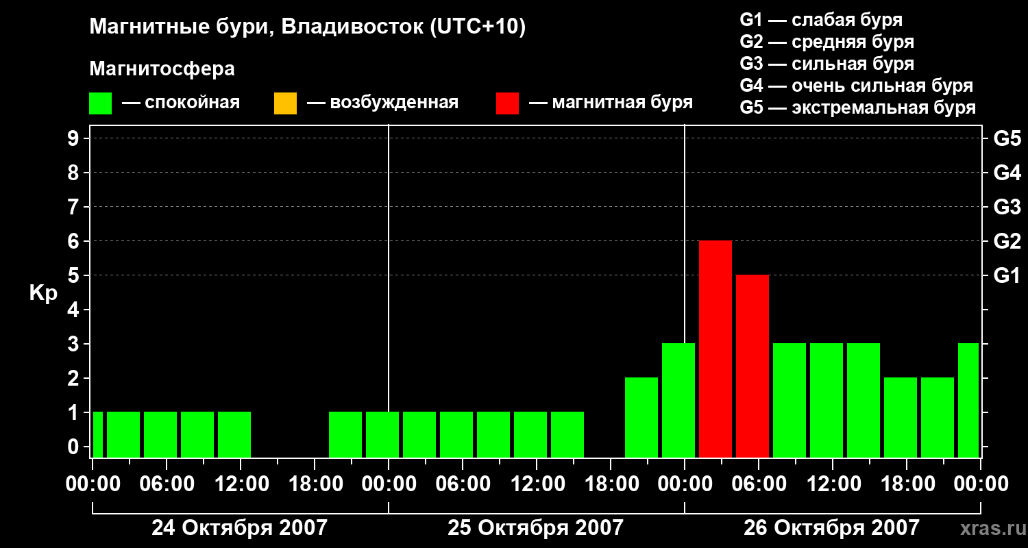 Магнитные бури во Владивостоке 26 октября 2007 года