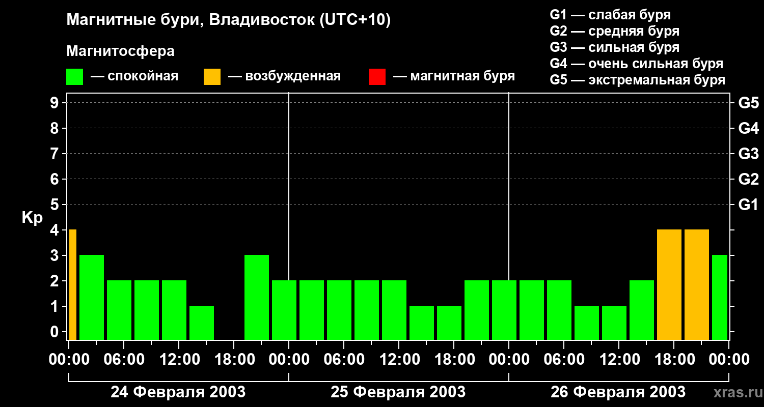 Магнитные бури во Владивостоке 26 февраля 2003 года