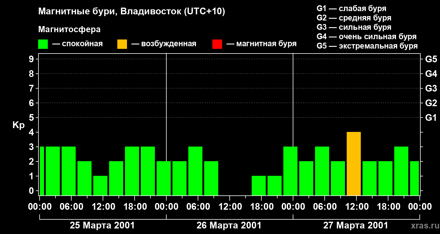 Магнитные бури во Владивостоке — 27 марта 2001 года
