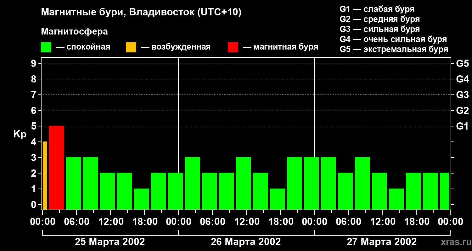 Магнитные бури во Владивостоке — 27 марта 2002 года