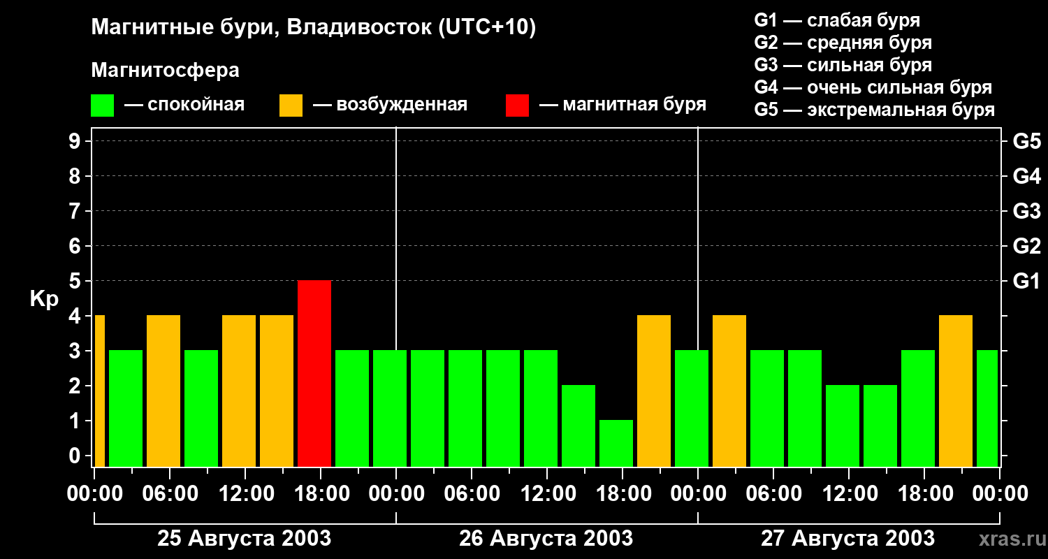 Магнитные бури во Владивостоке — 27 августа 2003 года