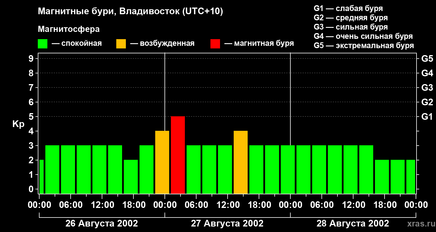 Магнитные бури во Владивостоке — 28 августа 2002 года