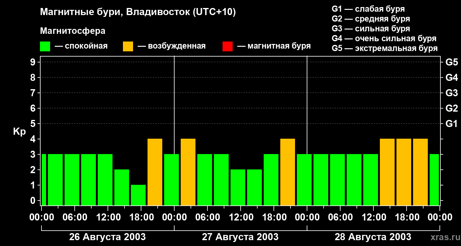 Магнитные бури во Владивостоке — 28 августа 2003 года