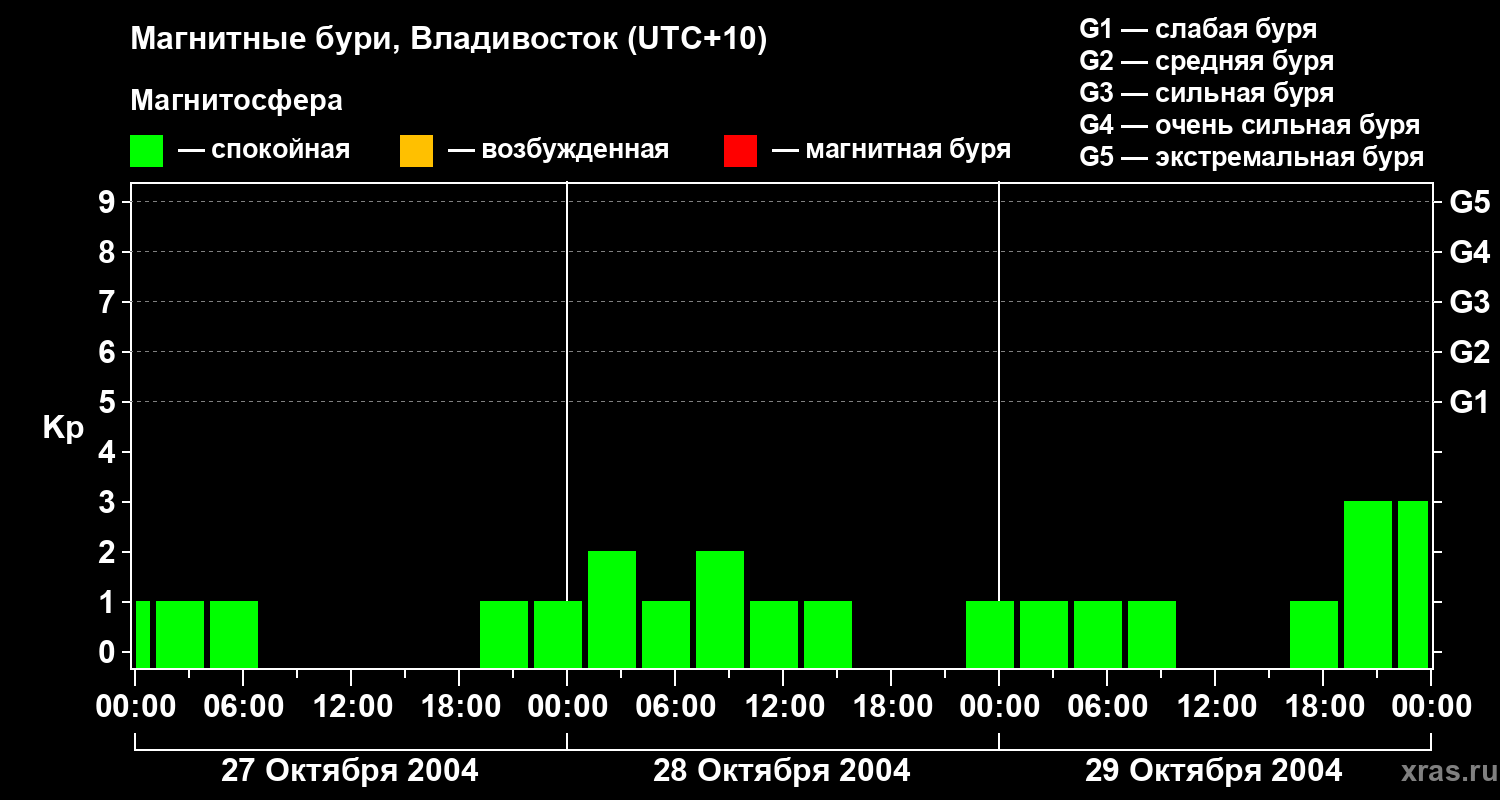 Магнитные бури во Владивостоке — 29 октября 2004 года
