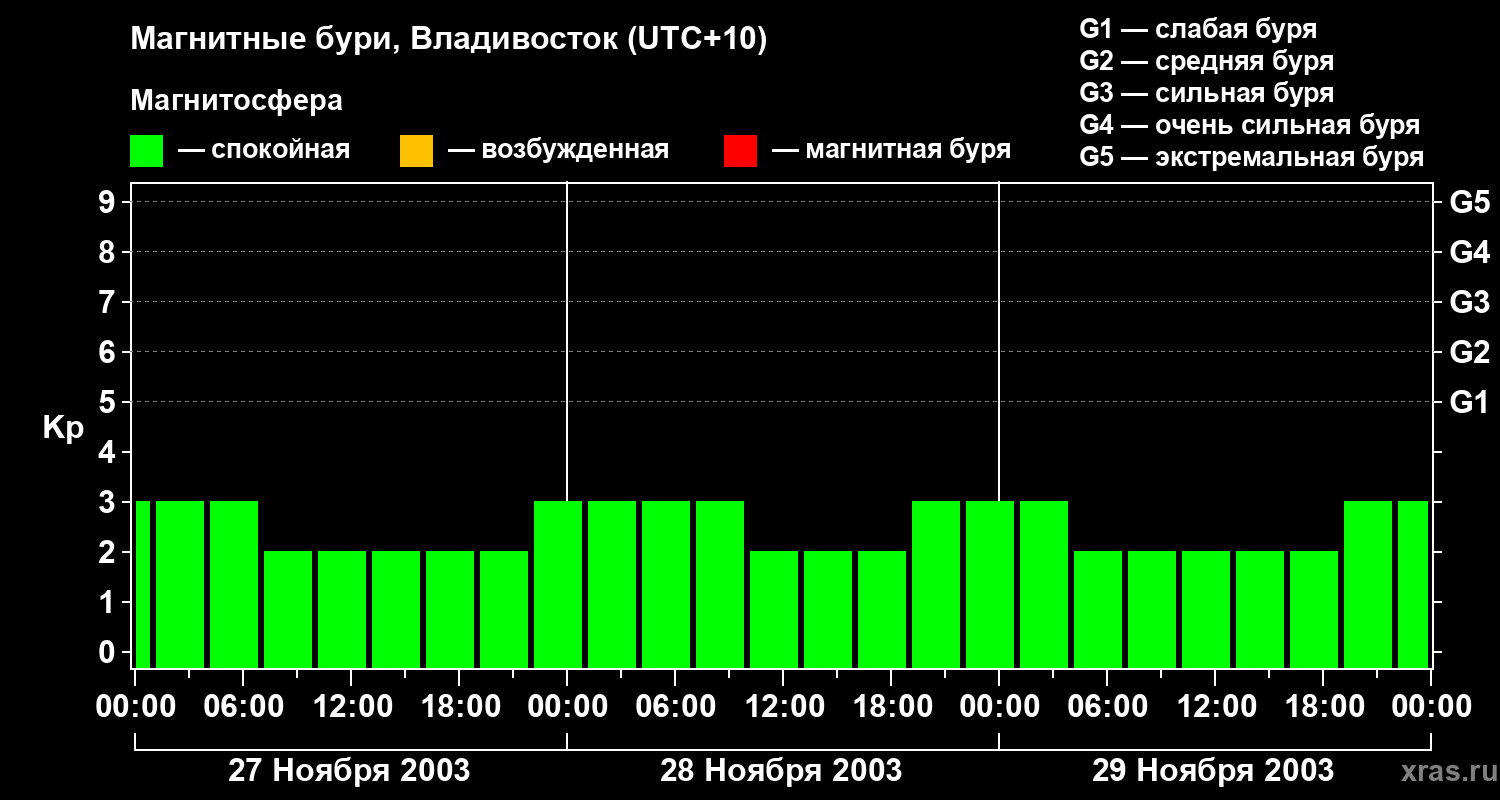 Магнитные бури во Владивостоке — 29 ноября 2003 года