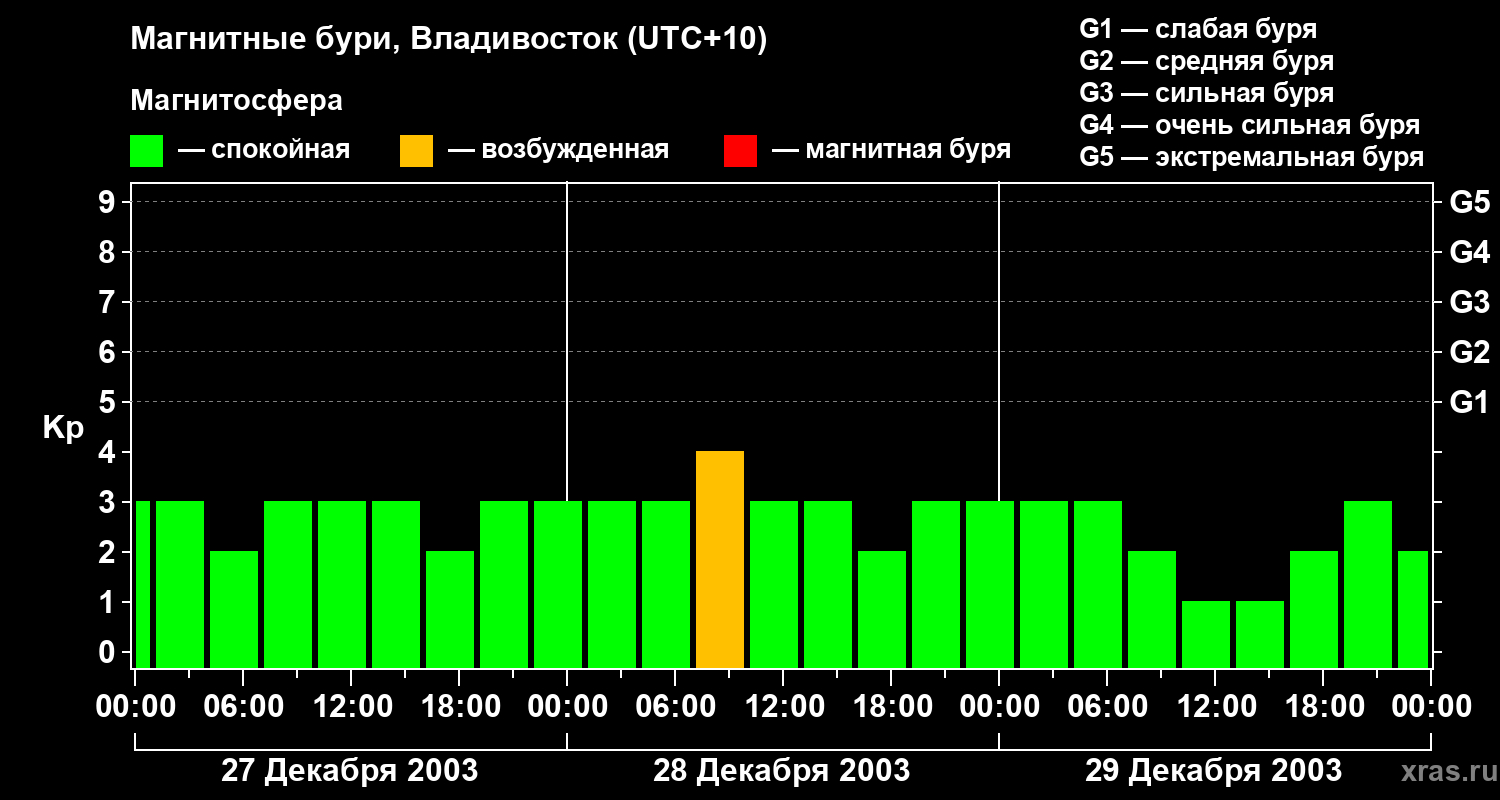 Магнитные бури во Владивостоке — 29 декабря 2003 года