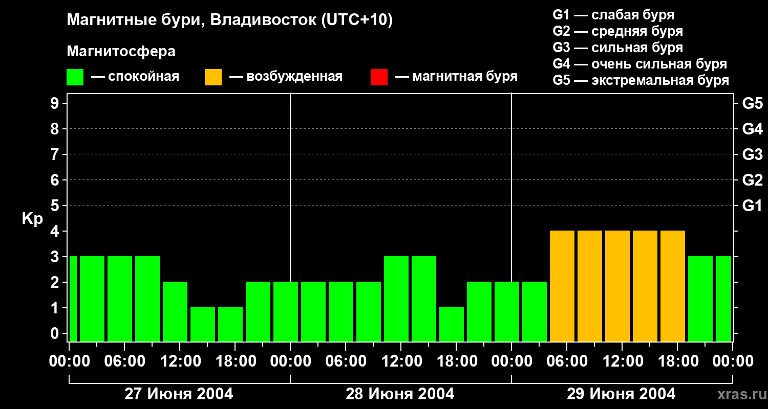 Магнитные бури во Владивостоке — 29 июня 2004 года