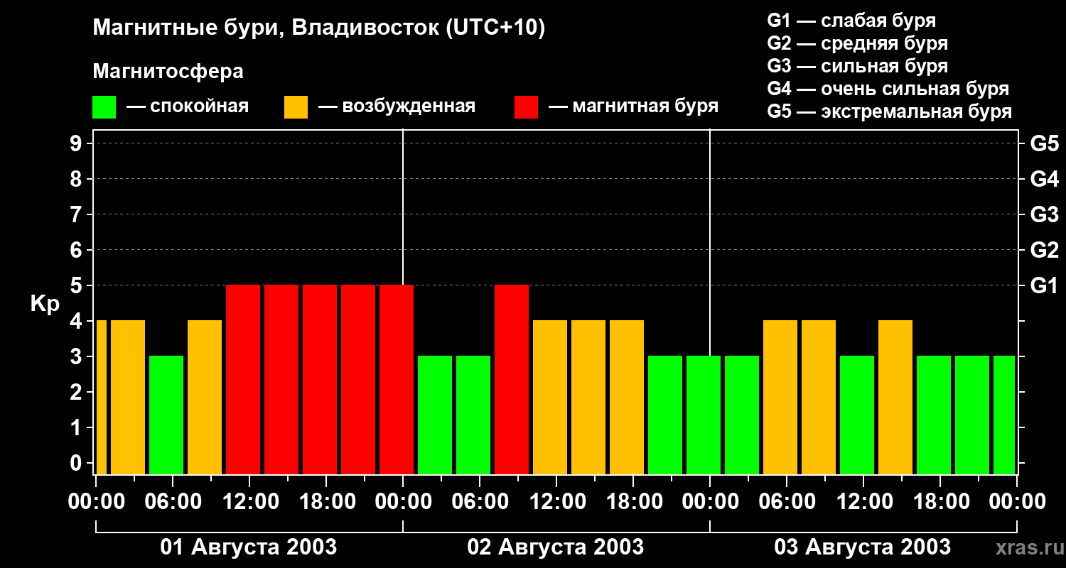 Магнитные бури во Владивостоке — 3 августа 2003 года
