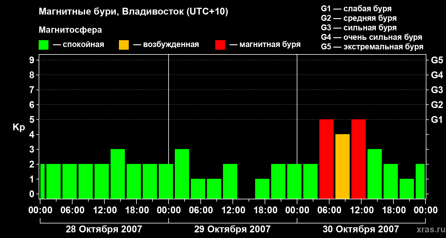 Магнитные бури во Владивостоке — 30 октября 2007 года