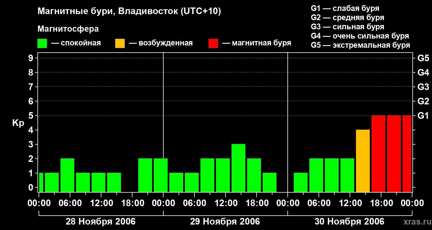Магнитные бури во Владивостоке — 30 ноября 2006 года