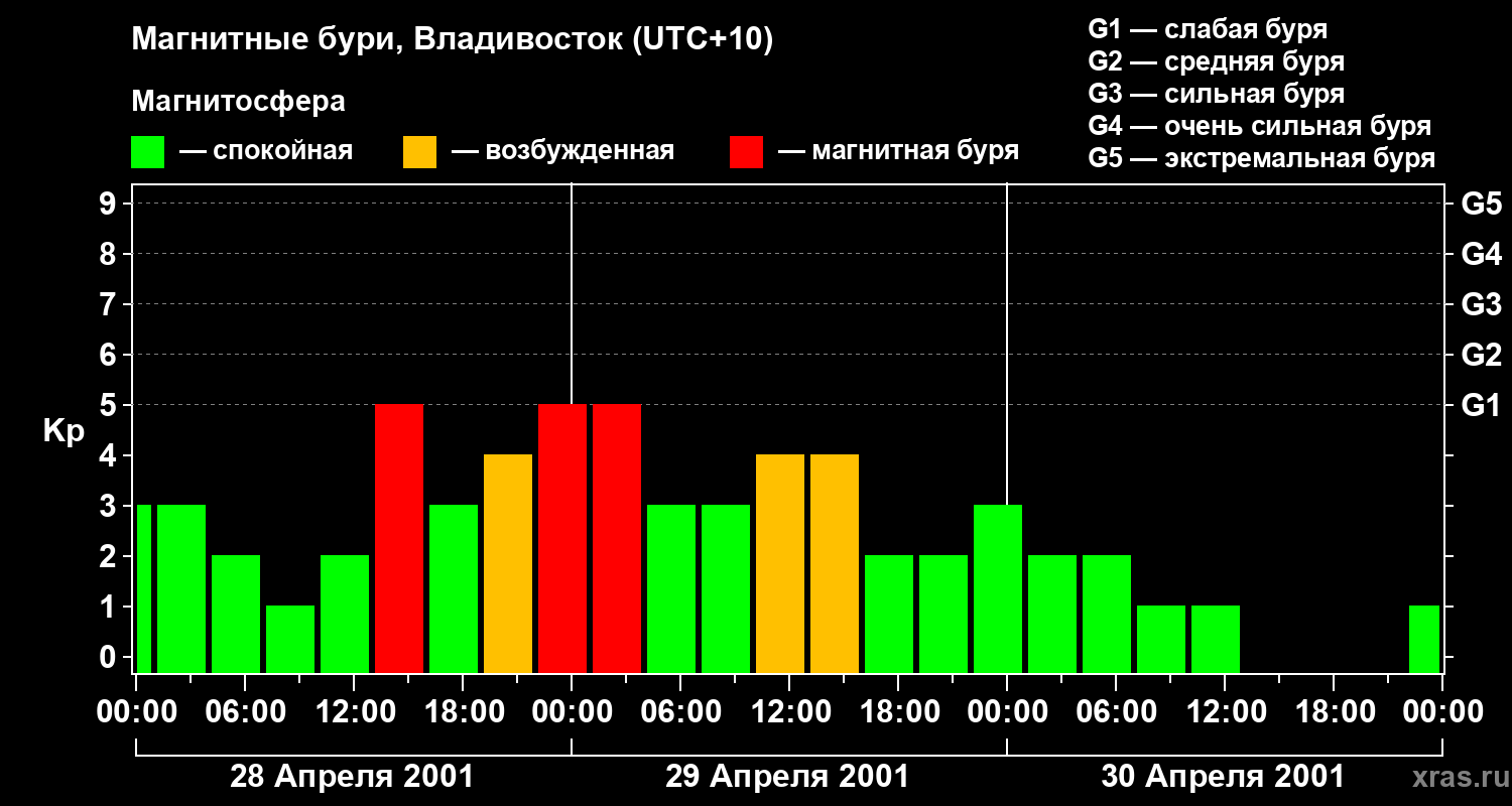 Магнитные бури во Владивостоке 30 апреля 2001 года