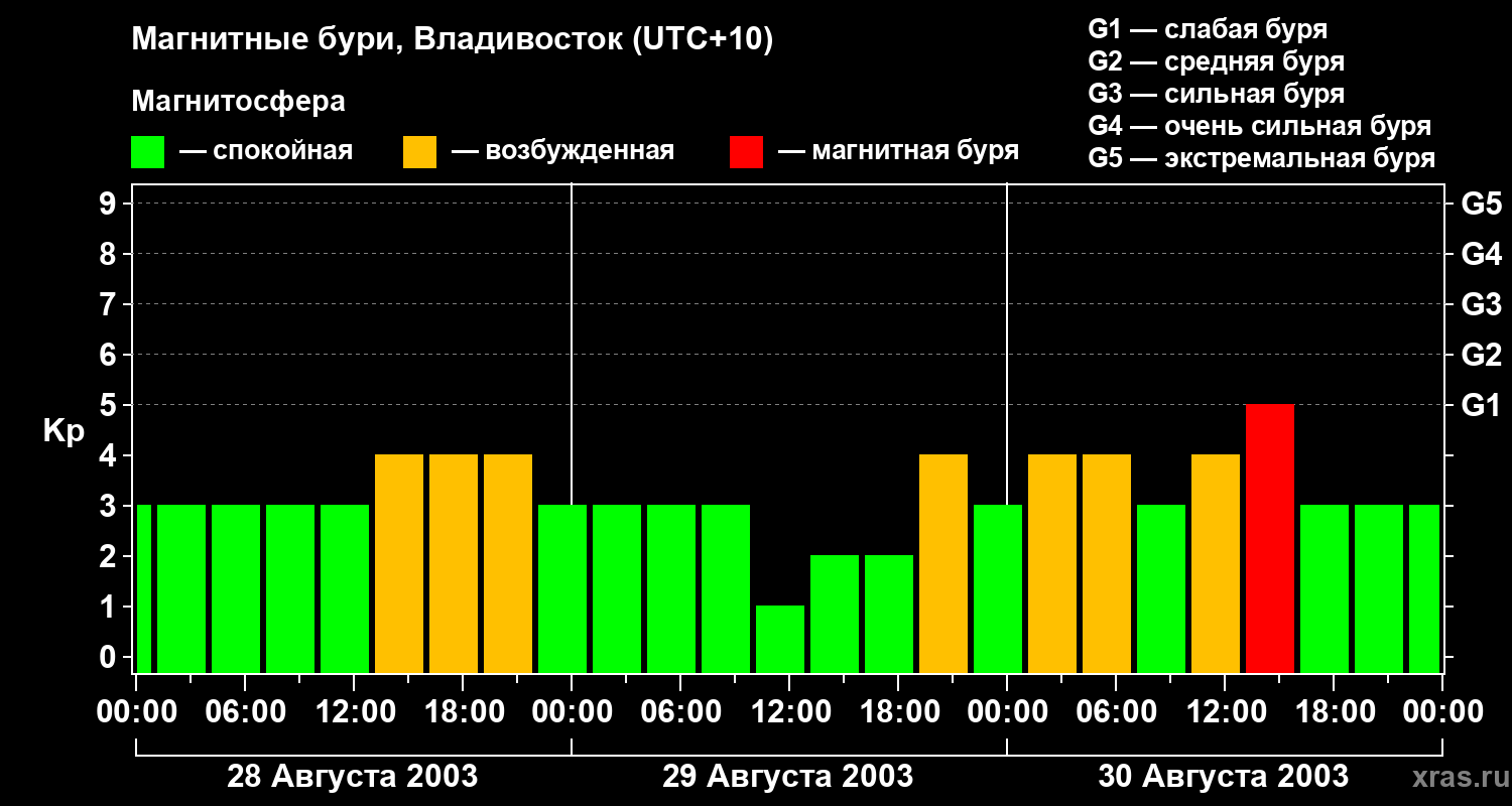 Магнитные бури во Владивостоке — 30 августа 2003 года