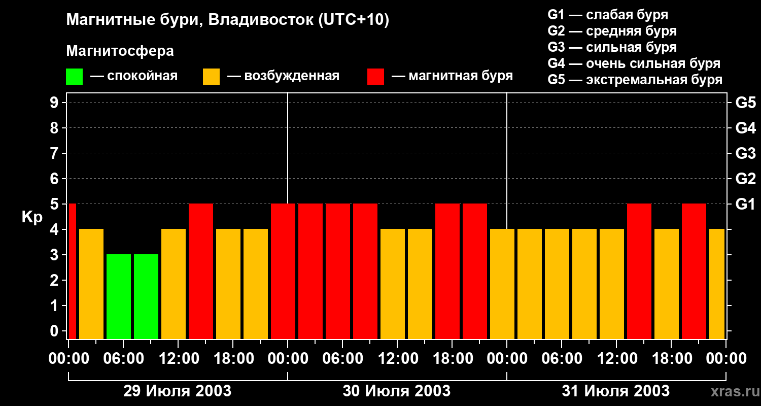 Магнитные бури во Владивостоке — 31 июля 2003 года