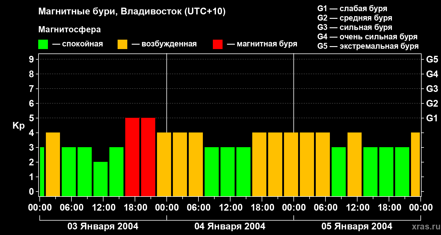 Магнитные бури во Владивостоке — 5 января 2004 года