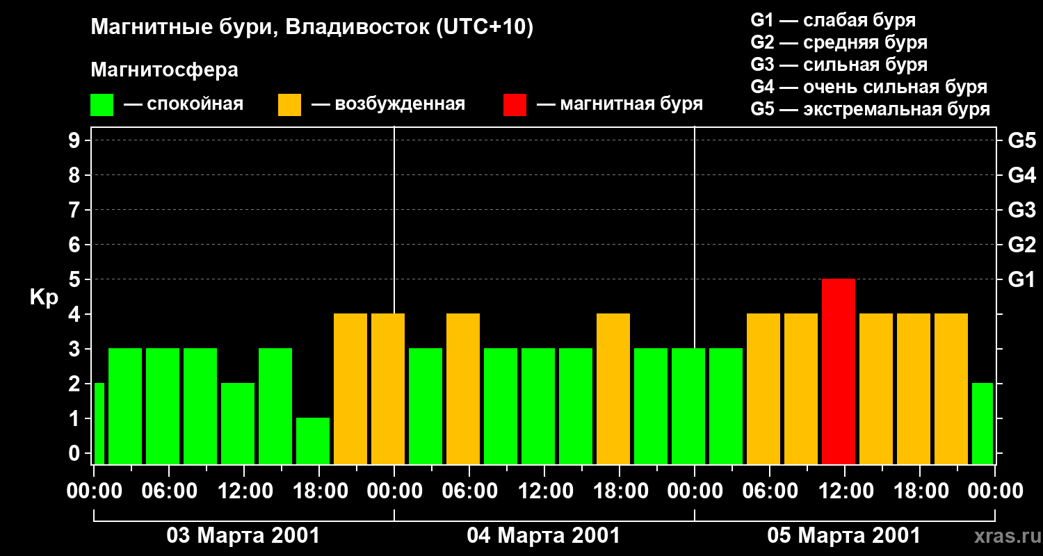 Магнитные бури во Владивостоке — 5 марта 2001 года