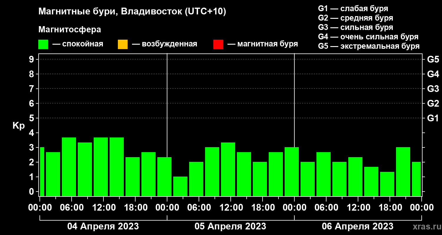 Магнитные бури во Владивостоке 6 апреля 2023 года