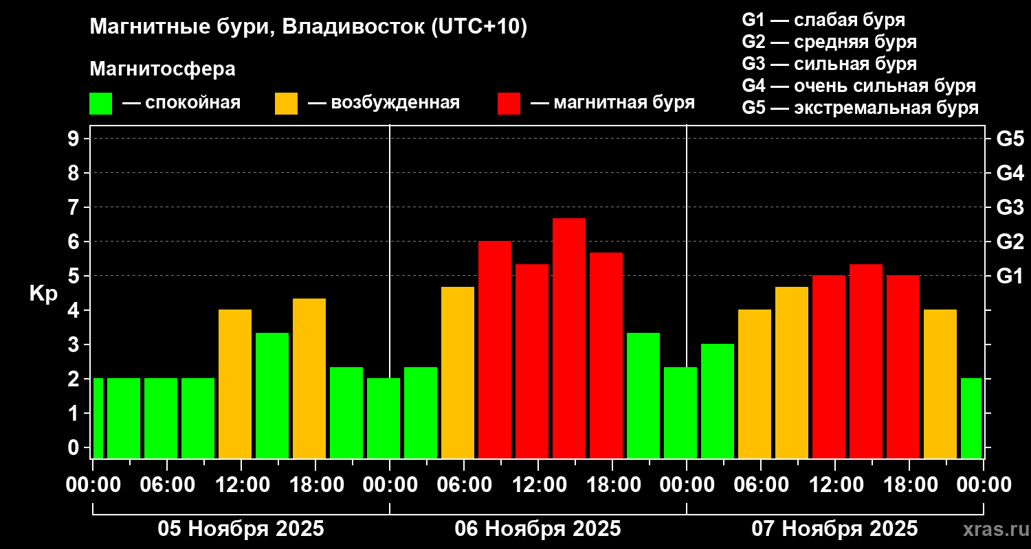 Магнитные бури во Владивостоке 7 ноября 2025 года
