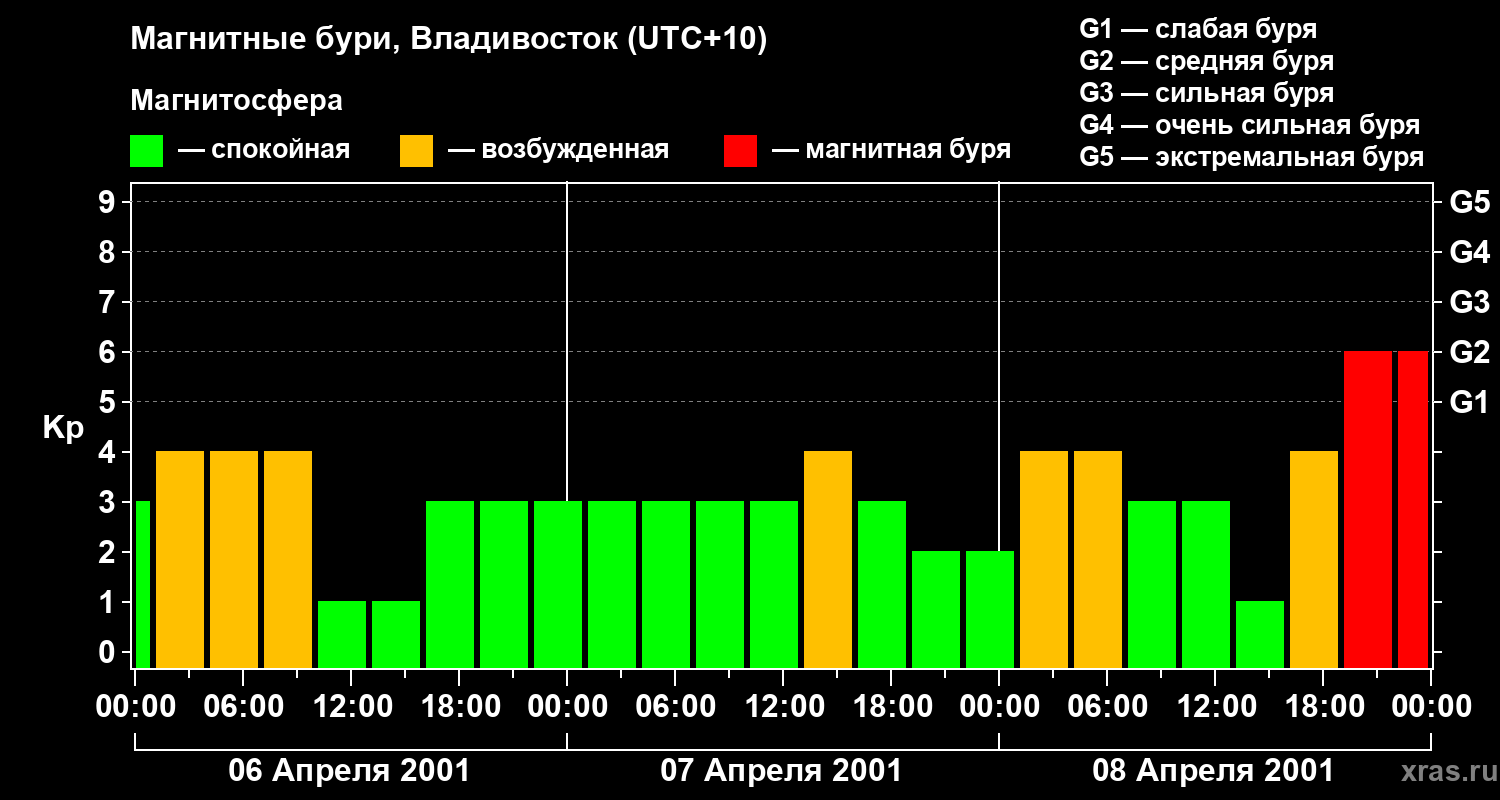 Магнитные бури во Владивостоке — 8 апреля 2001 года