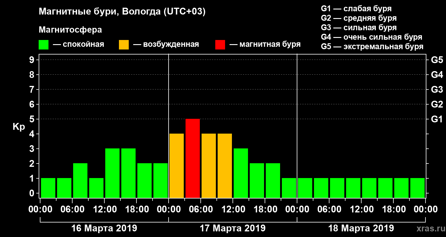 Магнитные бури в Вологде 18 марта 2019 года