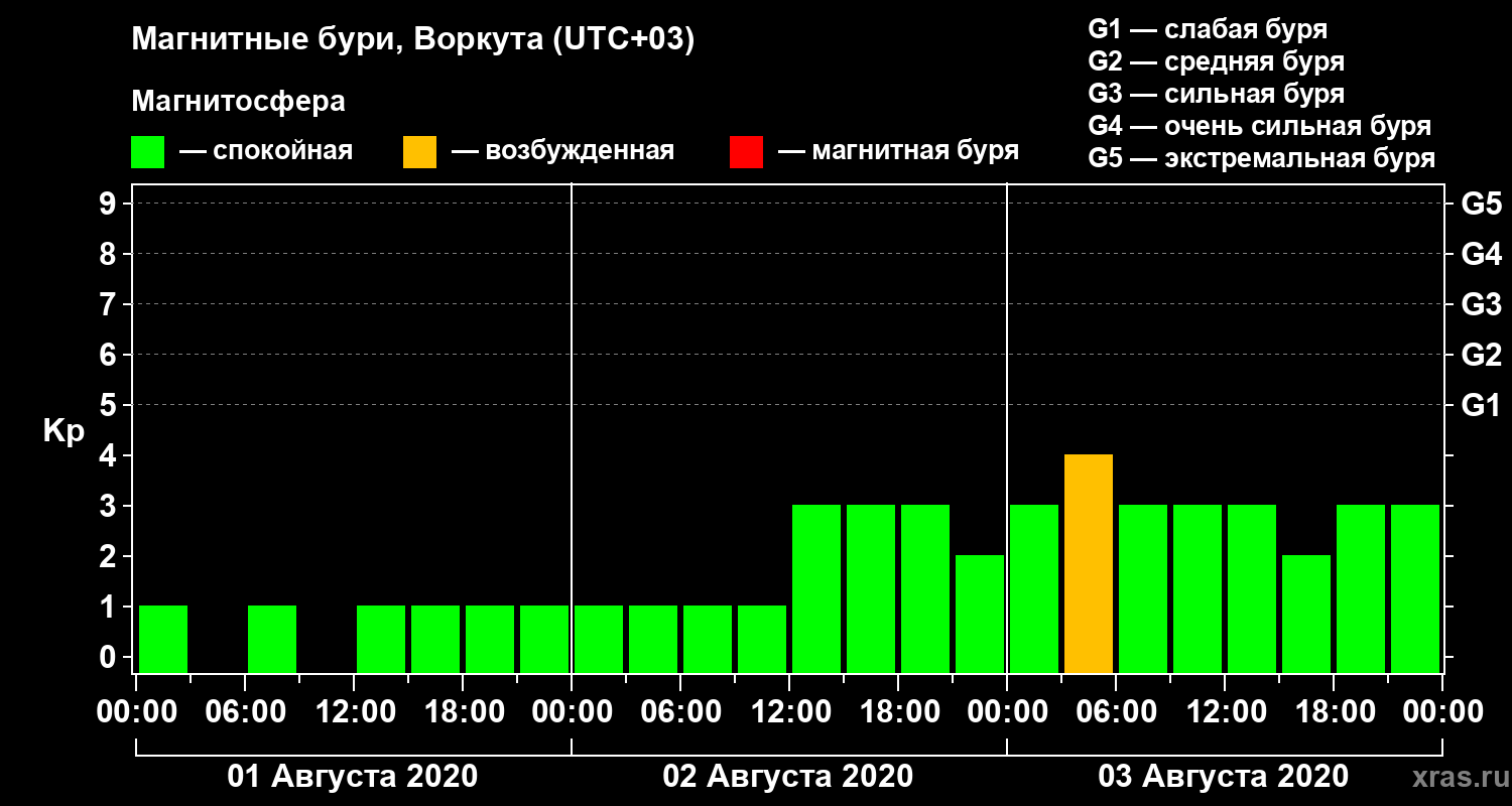Магнитные бури в Воркуте — 3 августа 2020 года