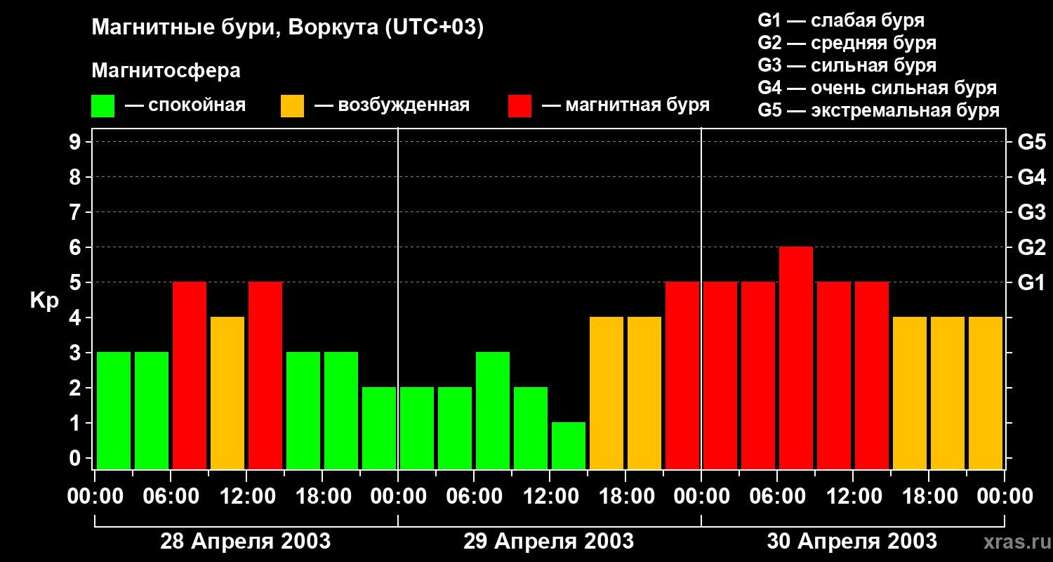Магнитные бури в Воркуте — 30 апреля 2003 года