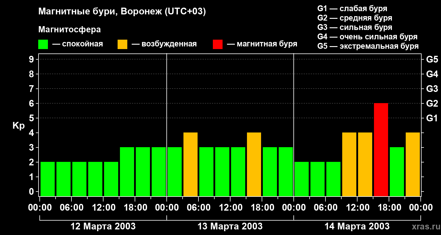 Магнитные бури в Воронеже — 14 марта 2003 года