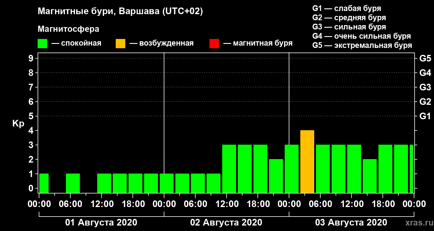 Магнитные бури в Варшаве — 3 августа 2020 года