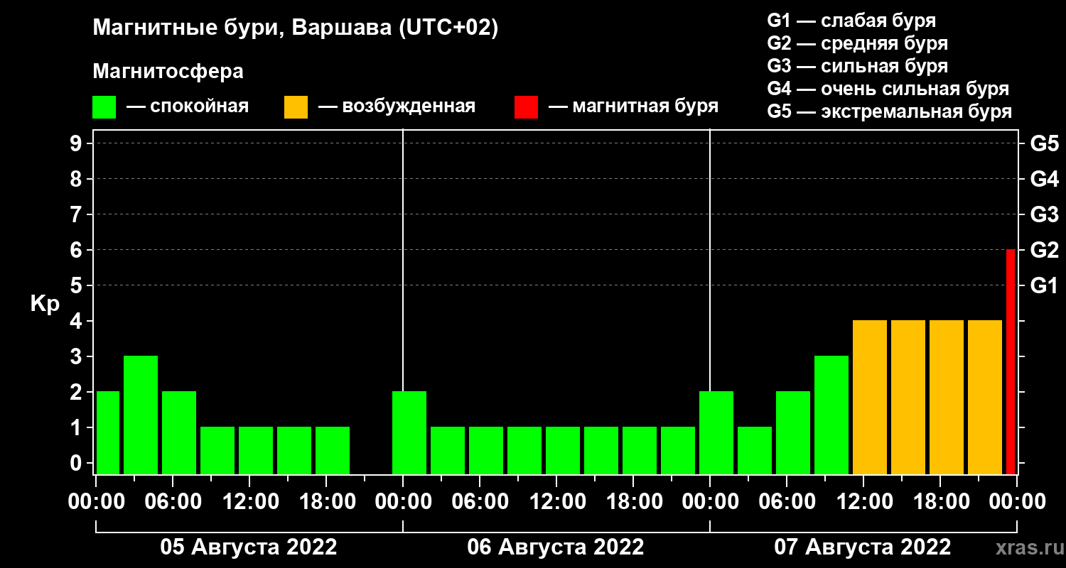 Магнитные бури в Варшаве — 7 августа 2022 года
