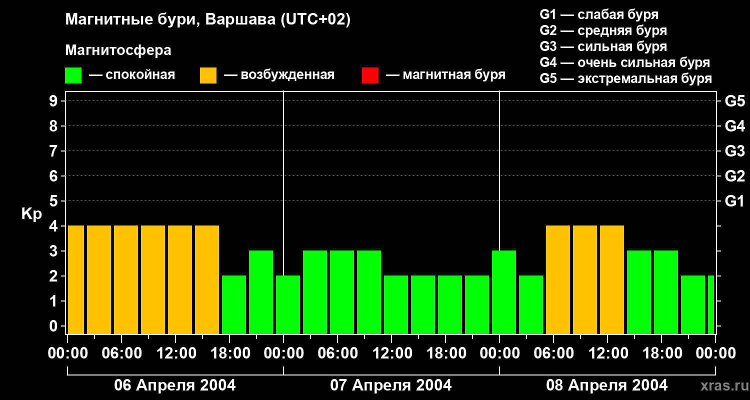 Магнитные бури в Варшаве — 8 апреля 2004 года