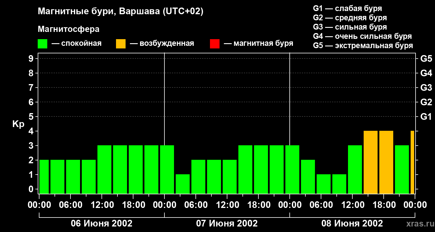 Магнитные бури в Варшаве — 8 июня 2002 года