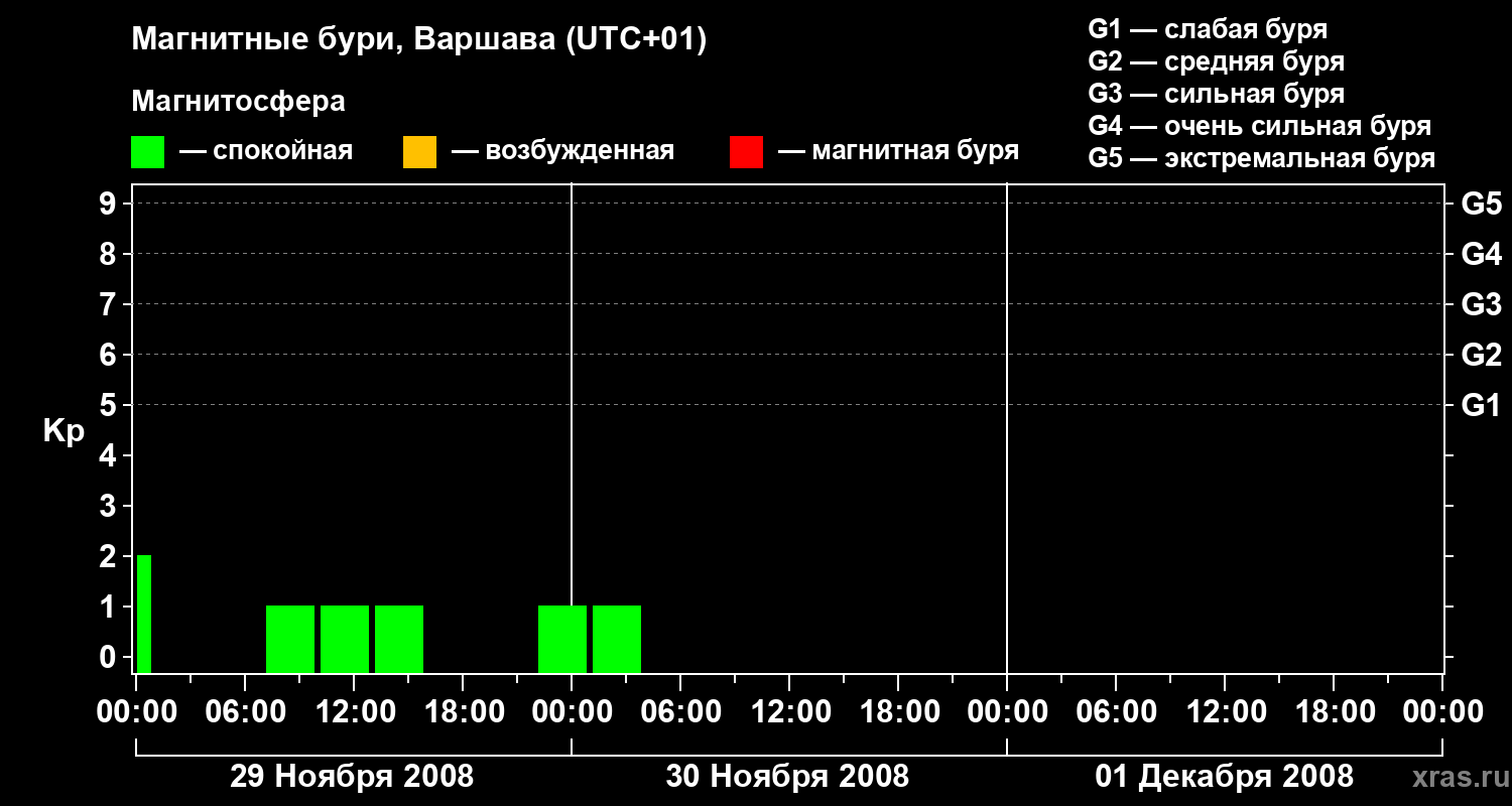 Магнитные бури в Варшаве — 1 декабря 2008 года